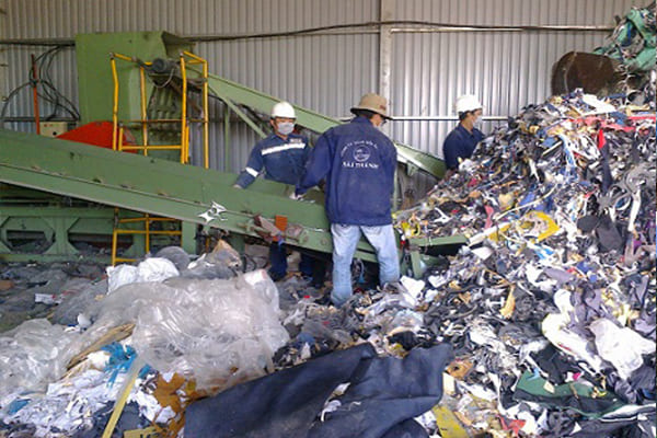 Nhân viên đang tiến hành xử lý và phân loại phế liệu vải